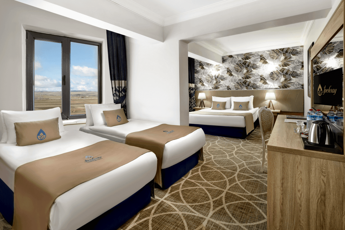 32 metrekarelik alan, termal su ve huzur veren bahçe manzarası ile 4 kişilik aile odalarında kendinizi evinizde hissedeceğiniz her tür detay düşünüldü.